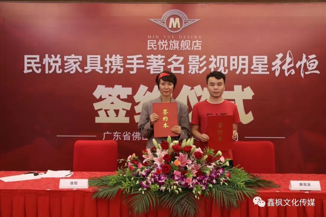 近日民悅家具品牌攜張恒在北京希爾頓酒店舉行簽約儀式。