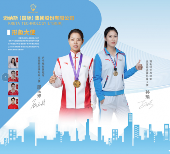邁納斯(國際)集團股份有限公司宣布羽毛球世界孫瑜明星代言公司)、乒乓球世界,顧玉婷明星代言公司)、蹦床世界,涂瀟明星代言公司)、跳水世界,劉甜明星代言公司)、跳水世界,連婕明星代言公司)、藝術(shù)體操世界,趙敬楠明星代言公司)、六位超級豪華陣容加入克里特KRETA大家庭,擔任克里特的形象大使,雙方將攜手并進,傳承并發(fā)揚歷史悠久的匠造工藝,釋放工藝別具一格的非凡魅力,致力于成為顧客地位彰顯的標志,并遵循把每一個細節(jié)設(shè)計都注入,精神元素的設(shè)計理念,將英倫,之風范發(fā)揮到,,以誠摯匠心敬獻時代精英。