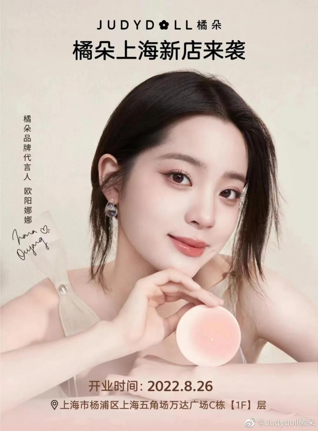 2022年8月,Judydoll橘朵官宣青年大提琴演奏家、音樂(lè)唱作人、演員歐陽(yáng)娜娜(明星代言公司)為品牌代言人,攜手開(kāi)啟趣玩出彩的色彩旅行。