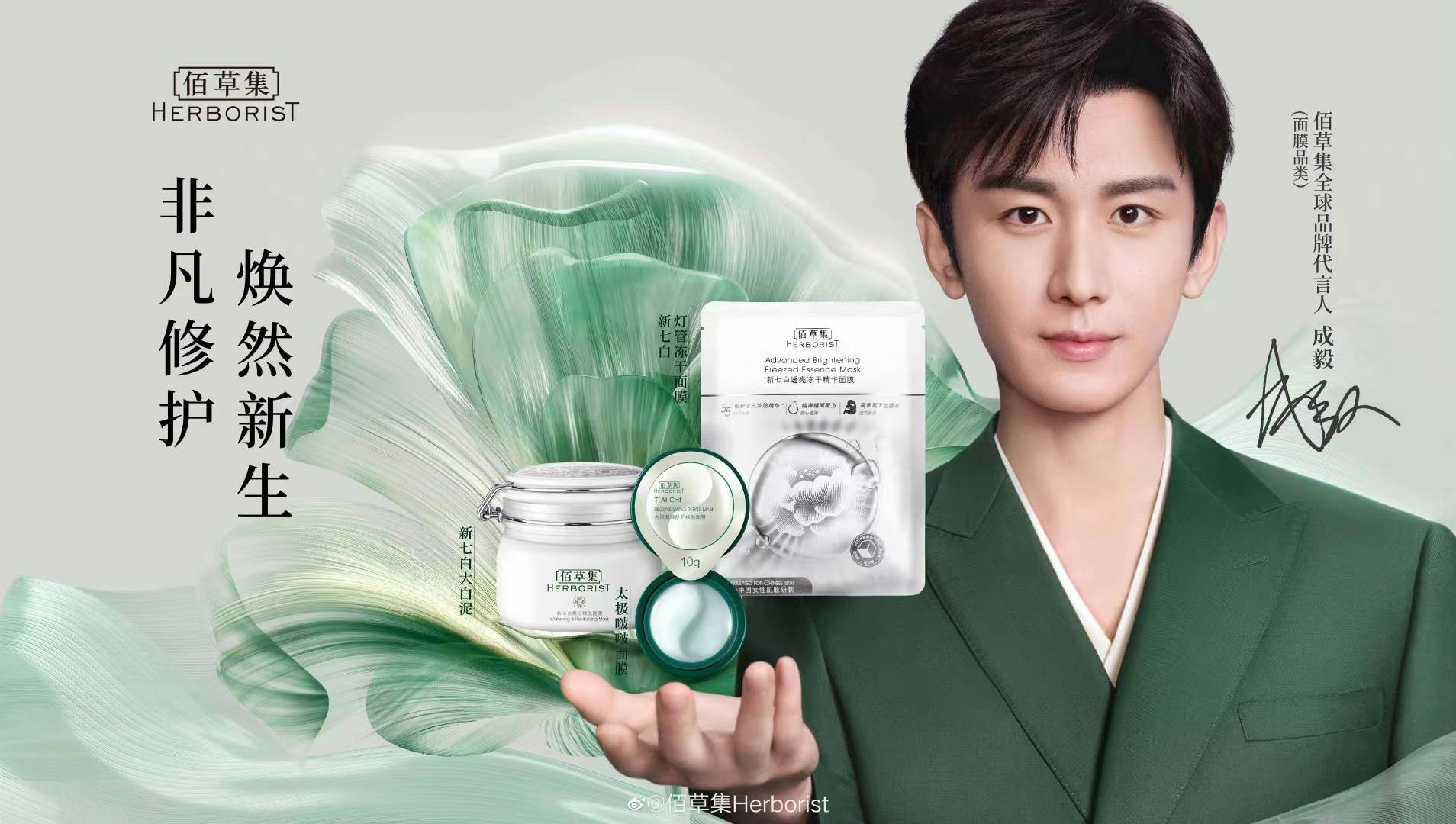 佰草集官方微博發(fā)文官宣了演員成毅(明星代言公司)為該品牌全球代言人(面膜品類)