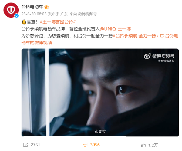 6月20日,臺鈴集團(tuán)正式官宣代言人,全能藝人王一博(明星代言公司)成為臺鈴品牌首位全球代言人。實(shí)力品牌與實(shí)力偶像強(qiáng)強(qiáng)聯(lián)袂,以專業(yè)、進(jìn)取、拼搏的精神,開啟全新旅程,演繹臺鈴超能S系列的極致品質(zhì)與實(shí)力。
