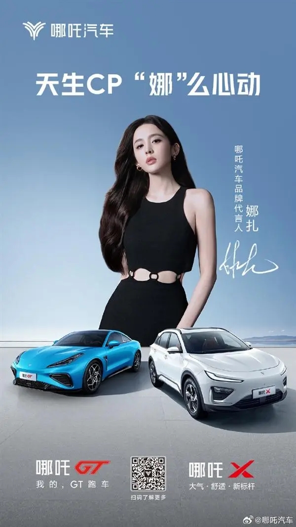 官方文案寫道:“高顏值的外表下蘊藏無盡實力,自信、張揚、時尚、運動,哪吒汽車攜手品牌代言人娜扎@我是娜扎 ,以山海和云河的名義,用科技與品質(zhì)帶你不斷探索未知之地。”