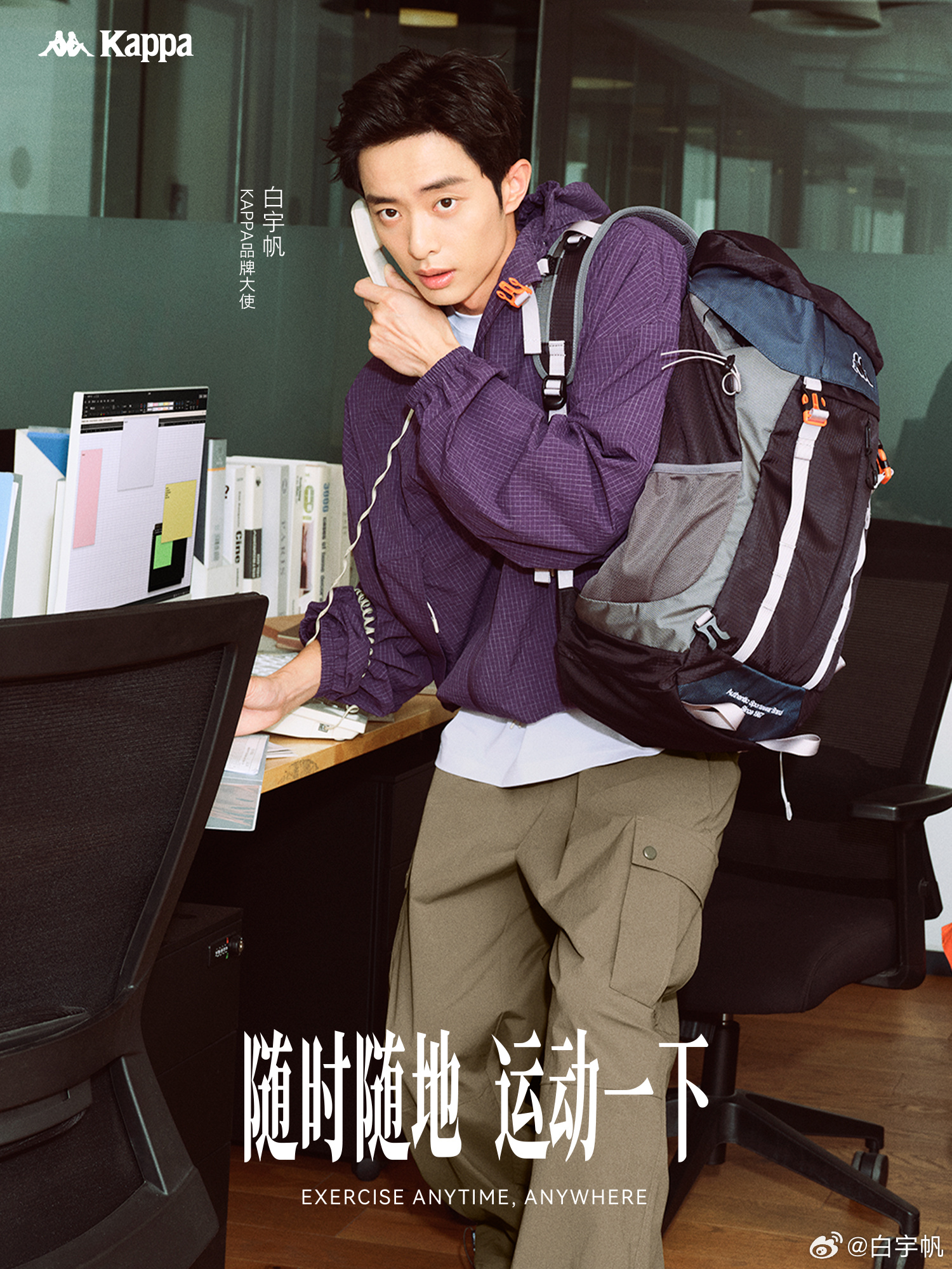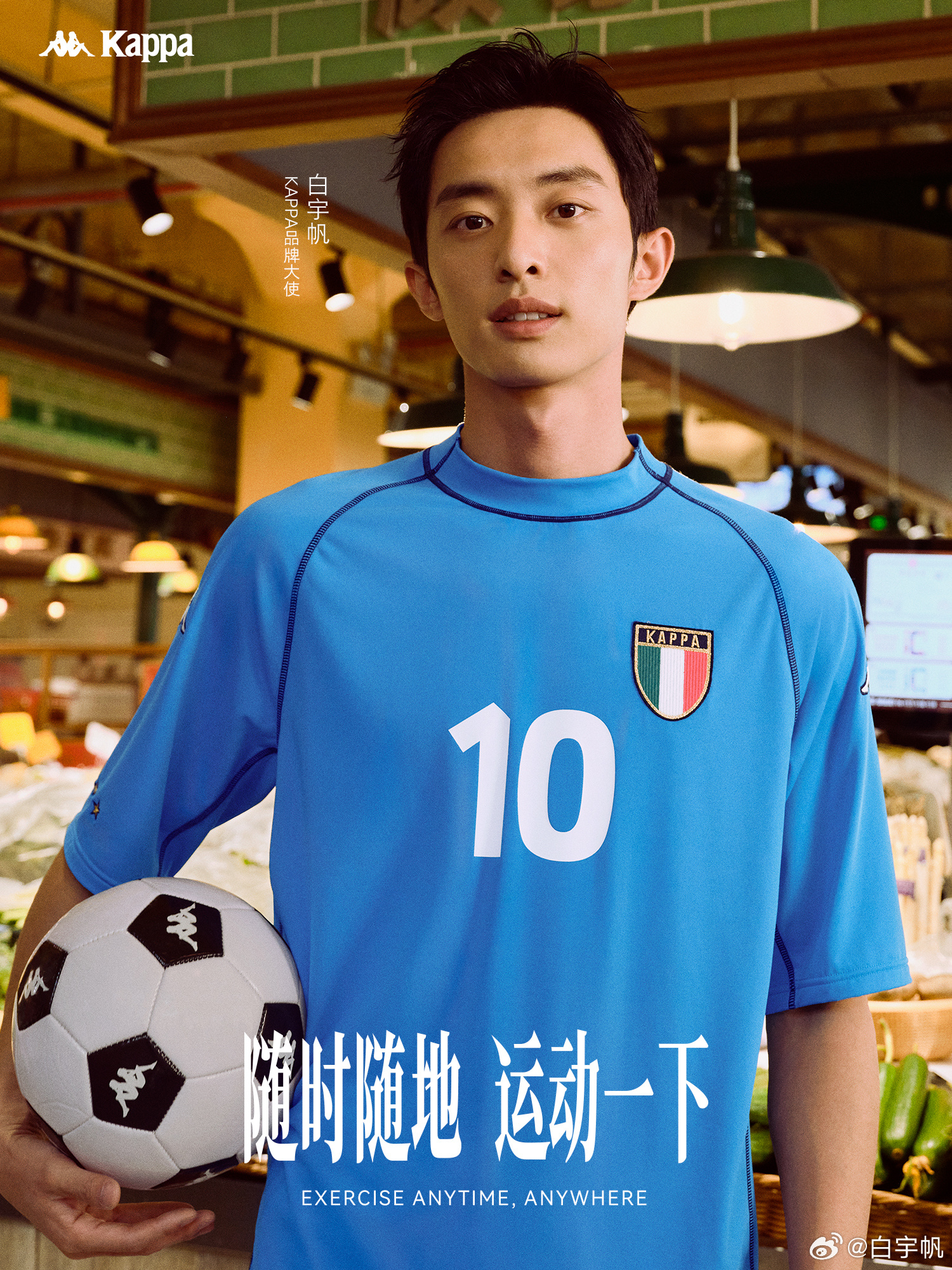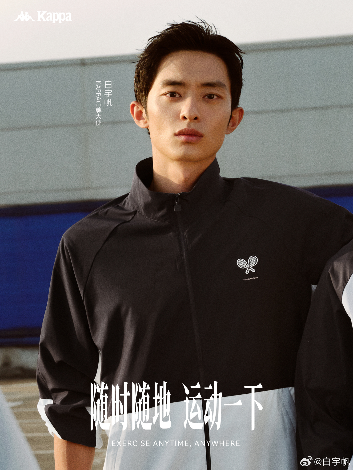 6 月 10 日,Kappa 官宣演員白宇帆(明星經(jīng)紀公司)為品牌大使,并釋出以「隨時隨地,運動一下」為主題的系列大片,向消費者傳遞品牌的自由運動理念。Kappa 認為生活中處處蘊含運動哲學,職場、停車場、菜市場,都可以成為你的運動場域,運動,最重要的是動起來。
