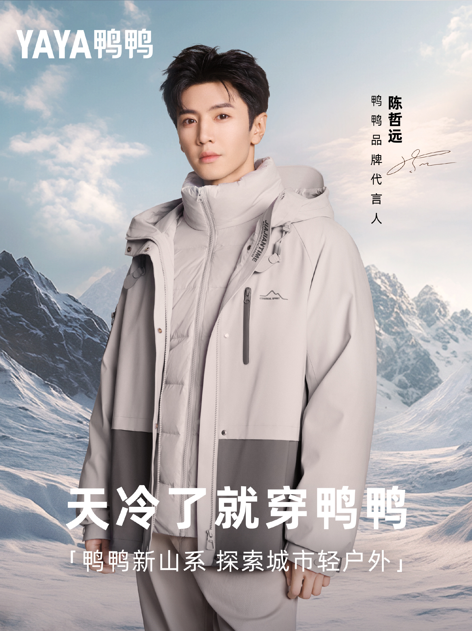 YAYA 鴨鴨官宣陳哲遠(明星經(jīng)紀公司)為品牌代言人并上身演繹鴨鴨新山系系列羽絨服,用輕量化設計,重塑戶外機能美學。YAYA 認為陳哲遠始終堅持熱愛探尋自我新可能,望遠山而前行但初心永恒不變,十分被品牌所欣賞。在未來,YAYA 也將和陳哲遠一起用溫暖和魅力,「絨」化這個寒冬,一起領略不一樣的溫暖旅程!