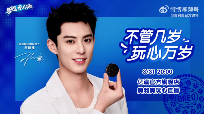 3 月 31 日,奧利奧官宣王鶴棣(明星代言公司)為品牌代言人,官宣 pv...