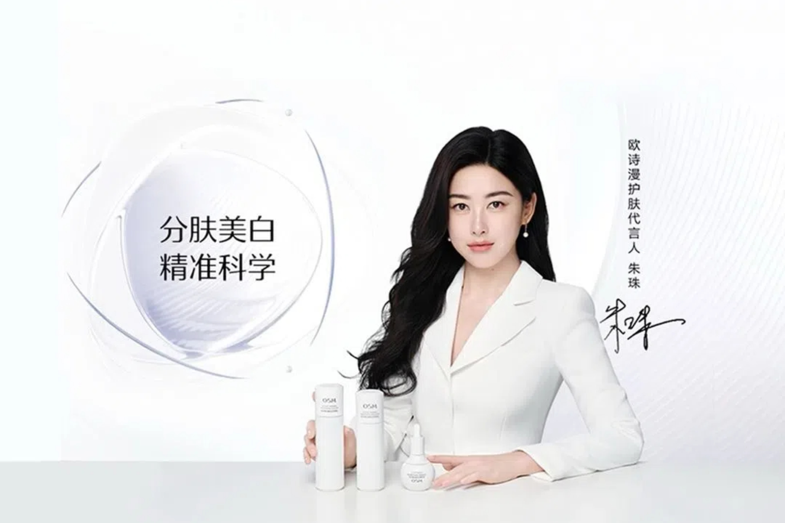 9 月 8 日,歐詩漫官宣女演員朱珠(明星代言公司)為品牌全新護膚代言人,并同步宣傳品牌全新的「分膚美白 精準科學(xué)」定位。