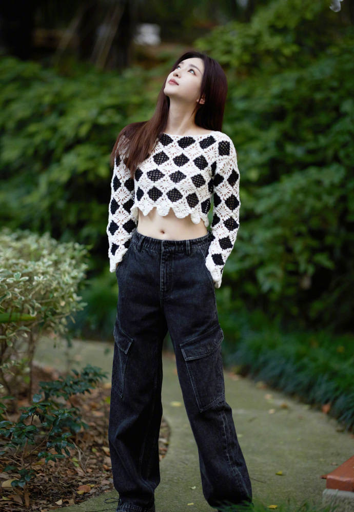 江疏影穿黑白格上衣告別夏日 優(yōu)雅知性清冷感十足