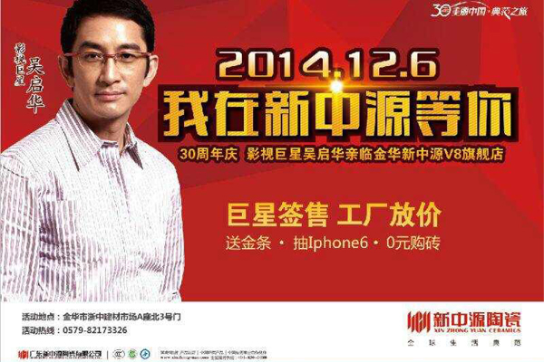 吳啟華出席新中源陶瓷5月份全國巡演行程