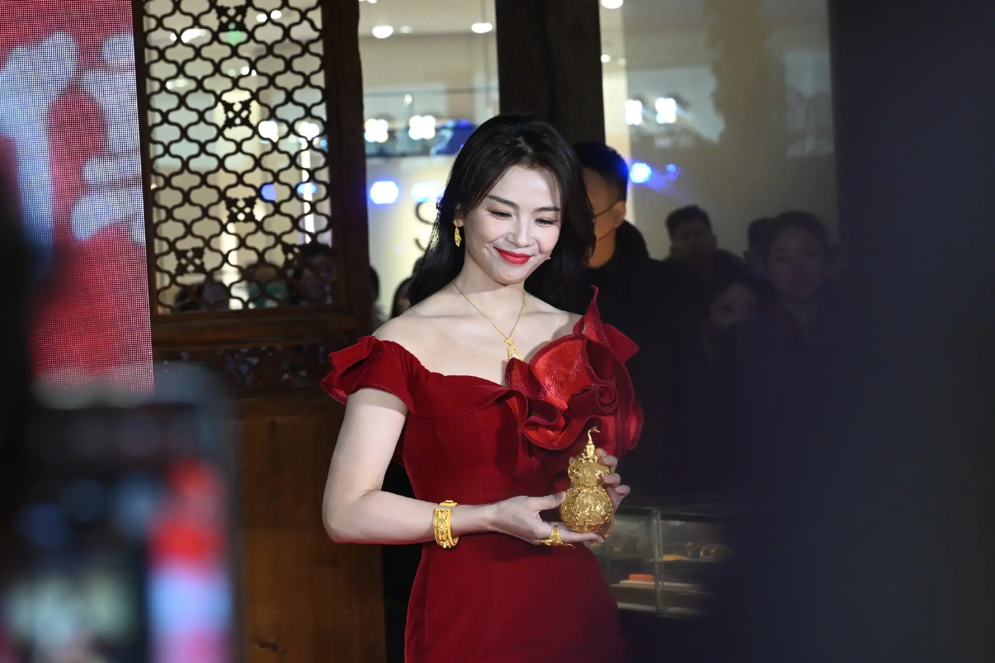 劉濤線下活動圖曝光!穿紅色緊身裙秀“花瓶腰”