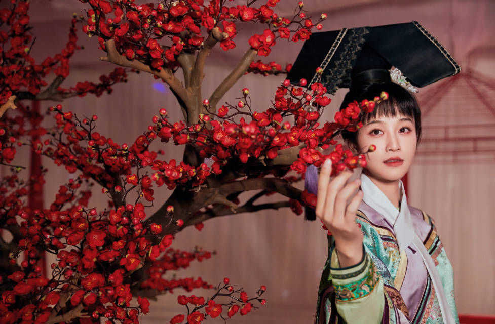 藍(lán)盈瑩穿綠旗裝重現(xiàn)浣碧 游逛梅園夢回《甄嬛傳》