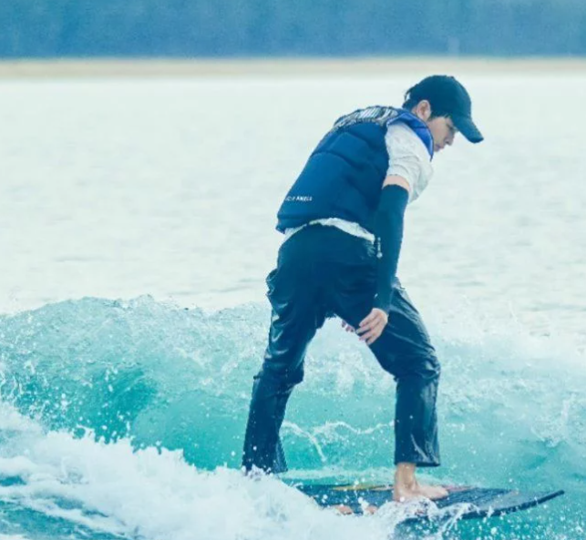 再來(lái)看看張藝興,男神地運(yùn)動(dòng)細(xì)胞果然稍微得強(qiáng)上一些,輕松的就站在沖浪板上,開(kāi)始了沖浪之旅,玩的那叫一個(gè)開(kāi)心,同時(shí)也是非常的帥氣。