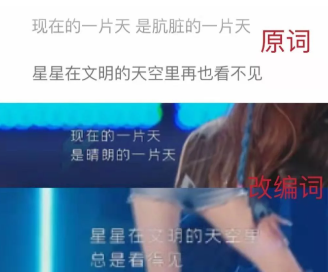 王心凌版的《星星點燈》對原版歌詞作出了較大改編,譬如把原歌詞“現(xiàn)在的一片天 是骯臟的一片天 星星在文明的天空里再也看不見”,改成了“現(xiàn)在的一片天 是晴朗的一片天 星星在文明的天空里 總是看得見”。