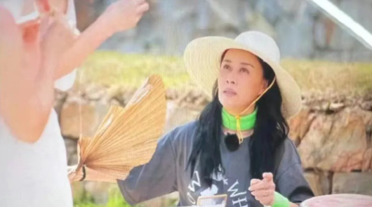 隨后,那英坐在椅子上,戴著草帽,手持一把已經(jīng)破損的蒲扇,在西瓜攤前毫無違和感。她的頭發(fā)已經(jīng)被汗水沾濕貼在脖子上,但即使大汗淋漓,那英依舊沒有離開。當(dāng)有路人經(jīng)過時,那英還會主動與對方交談,行為十分接地氣。