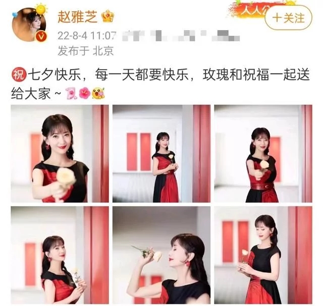 8月4日,趙雅芝明星經(jīng)紀(jì)公司)在社交平臺上曬出多張美照慶祝七夕節(jié),把祝福和玫瑰一起送給大家,受到網(wǎng)友關(guān)注。