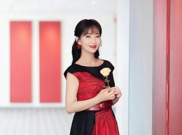 照片中,趙雅芝身穿紅黑拼色連衣裙,腳踩一雙黑色恨天高,腰間系著紅色腰帶,整套造型以紅、黑兩色為主,連耳環(huán)都是紅色的,細(xì)節(jié)滿滿,一看就是用心搭配過的。