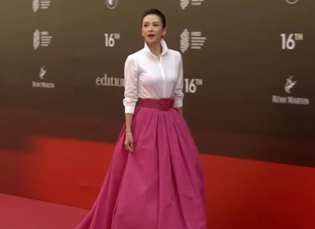 FIRST青年電影紅毯:章子怡玫紅長裙艷壓全場,馬麗袁泉穿姐妹裝