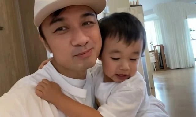 古巨基寵溺地笑著看兒子唱歌,一臉幸福的表情,而妻子陳韻晴則站在一旁默默錄像,看著父子倆互動,畫面十分溫馨。