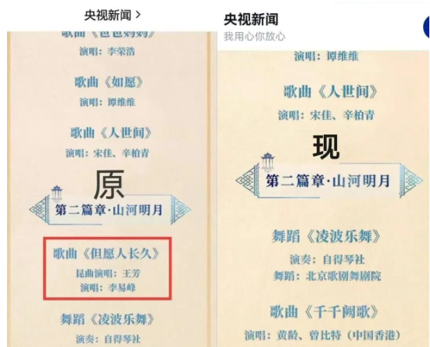 不僅如此,在原本今年央視中秋晚會(huì)的節(jié)目單上,是有李易峰的表演曲目的,但有網(wǎng)友發(fā)現(xiàn),不知何時(shí)央視中秋晚會(huì)節(jié)目單,已經(jīng)不見(jiàn)李易峰的身影了。
