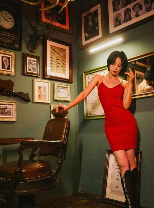 在照片中,只見藍(lán)盈瑩身穿紅色吊帶短裙,搭配黑色的長筒靴,化著精致的妝容,配上一頭短發(fā)又颯又美,真是讓人著迷,而且她的身材真的很好,那纖細(xì)的腰肢就宛如巴掌大小,平坦的小腹上沒有絲毫贅肉,穿著吊帶的她身材呈現(xiàn)出S型,這么好的身材比例真是讓人羨慕不已。