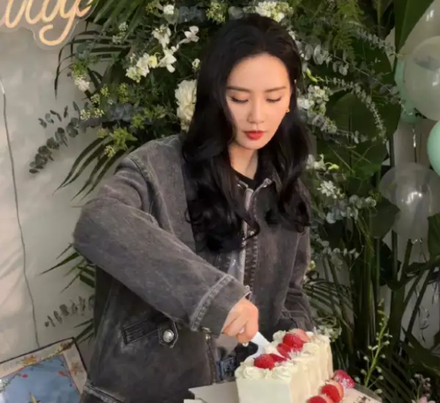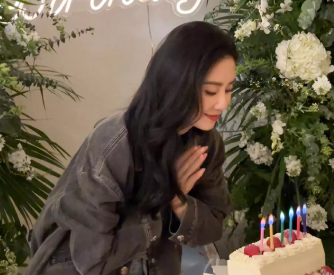 除此之外還有一組花絮照,花絮照上的她穿寬松夾克,低頭切著蛋糕,并對(duì)蛋糕許愿。