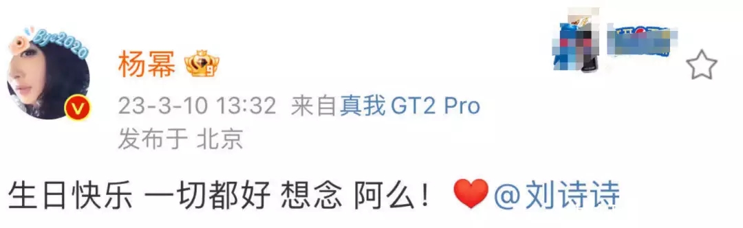 楊冪跟劉詩詩同為85后小花旦,很久沒有見到了,所以這次楊冪除了祝福她一切都好外,也表示自己很想她,在文末發(fā)了一個(gè)“阿么”的語氣詞,表達(dá)親昵之意。