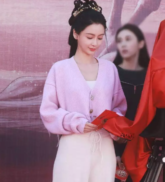 當(dāng)天,只見(jiàn)angelababy身穿紫色深V毛衫,內(nèi)搭白色背心,下身搭配一件白色長(zhǎng)褲,尤其是她的妝發(fā),當(dāng)時(shí)就是按照劇中來(lái)弄的,一頭古裝發(fā)型,整個(gè)人顯得格外優(yōu)雅,很是漂亮,而且也展現(xiàn)了她超好的身材比例,讓人著迷,她低頭看向手中的紅包時(shí),更是表現(xiàn)出一種嬌羞的韻味,很是好看,而且古裝造型加上現(xiàn)代服飾讓她也是別有一番風(fēng)味。