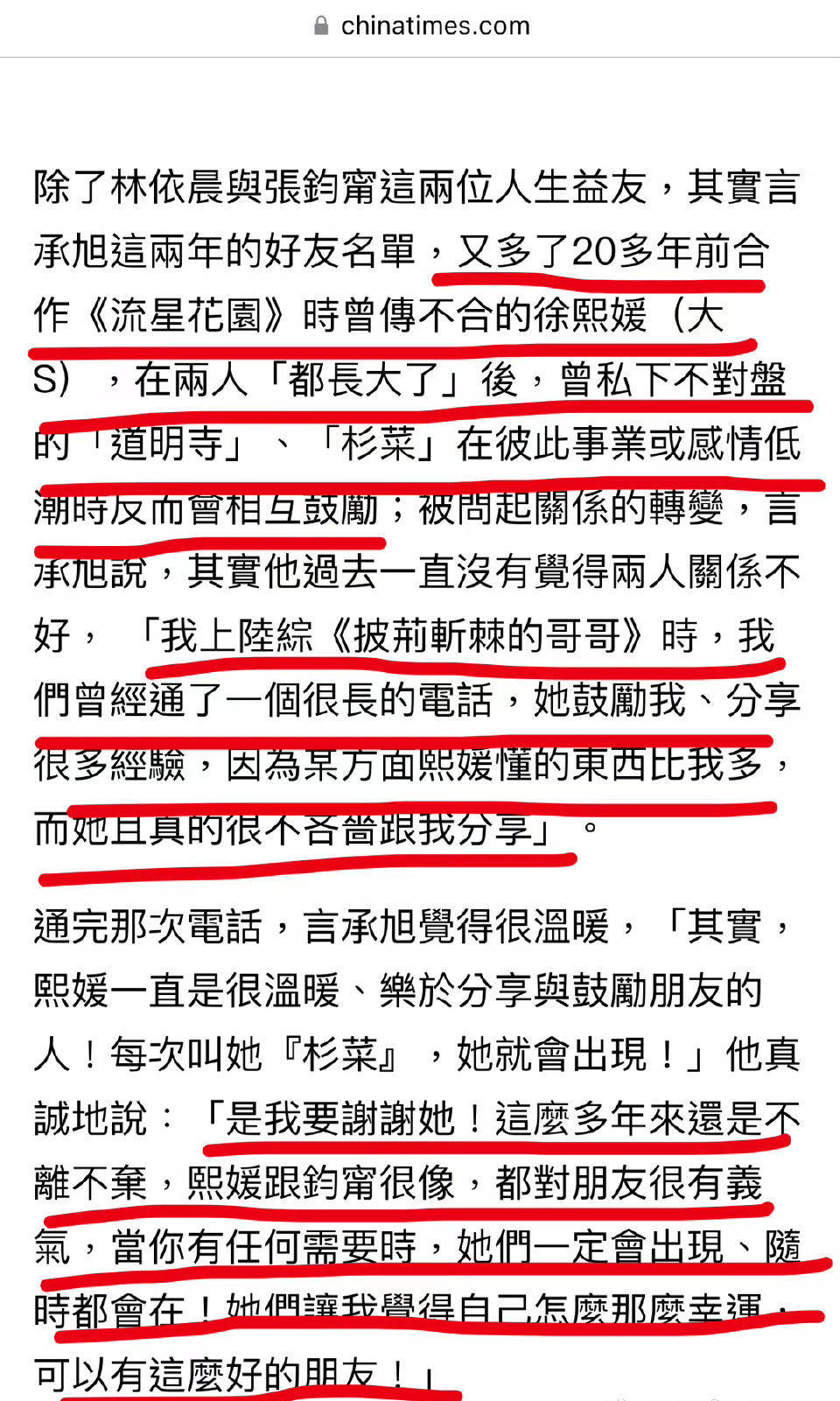 近日,言承旭(明星代言公司)接受媒體采訪時(shí),表示除了和林依晨、張鈞甯這些老友時(shí)?;ハ嚓P(guān)心鼓勵(lì)之外,好友又多了20多年前合作《流星花園》時(shí)曾傳不合的大S,在兩人“都長(zhǎng)大了”后,曾私下不對(duì)盤(pán)的“道明寺”、“杉菜”在彼此事業(yè)或感情低潮時(shí)反而會(huì)相互鼓勵(lì)。