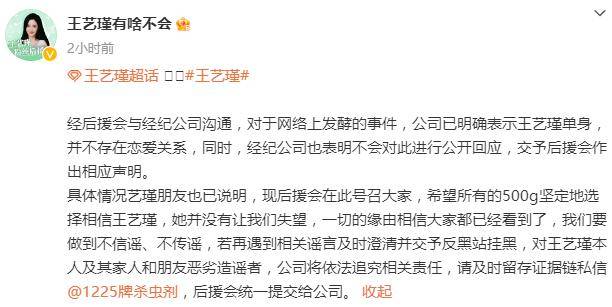 王藝瑾后援會回應(yīng)戀情傳聞:公司明確表示是單身