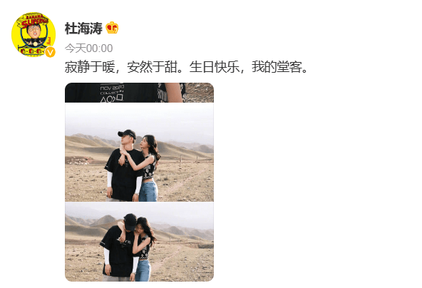 6月13日,杜海濤(明星經(jīng)紀(jì)公司)零點(diǎn)發(fā)文為妻子沈夢辰慶生:“寂靜于暖,安然于甜。生日快樂,我的堂客。 ”并曬出合照,倆人動作親昵,羨煞旁人。
