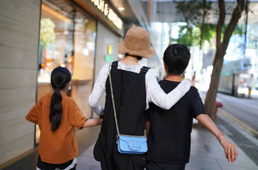 曬帶等等小花出國游玩照,母子三人牽手攬肩幸福開心。