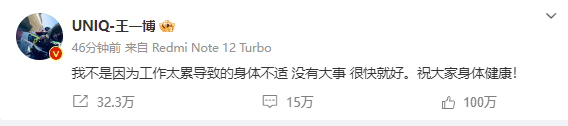 王一博發(fā)文報平安:不是因為工作太累導(dǎo)致身體不適