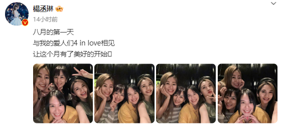 近日!楊丞琳(明星經(jīng)紀(jì)公司)曬出4 in love重聚合照,并配文稱:“八月的第一天,與我的愛人們4 in love相見,讓這個(gè)月有了美好的開始。”