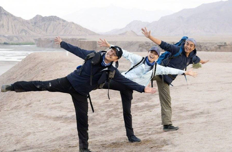 劉濤與胡歌、陳龍在高原開心擺pose。