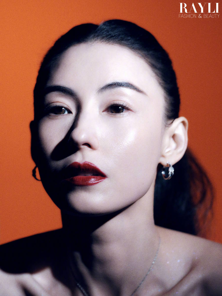 張柏芝挑戰(zhàn)L形腮紅,側(cè)臉格外亮眼。