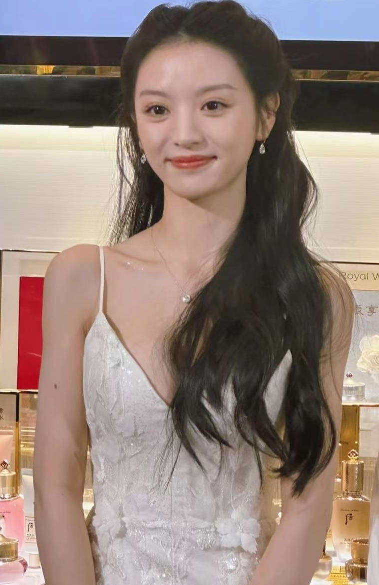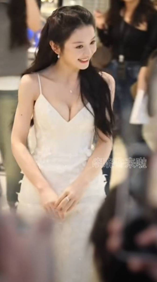 田曦薇站在人群中白到發(fā)光。