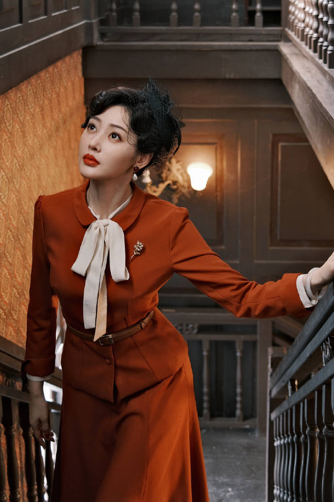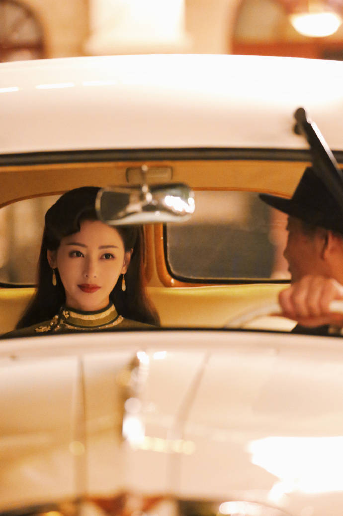 張?zhí)鞇蹠衩駠A麗風(fēng)片場(chǎng)照 雨中撐傘復(fù)古感十足