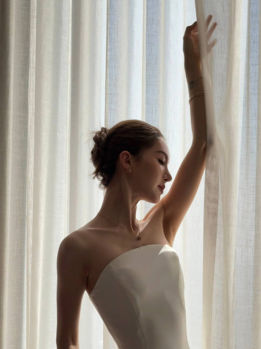 金晨手臂修長(zhǎng),天鵝頸迷人。