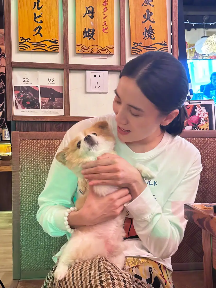 宋佳與軟萌小狗拍合照 抱在懷里又摸又親超開心
