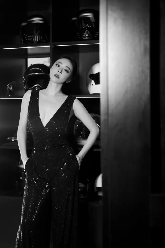 高葉深V亮片禮裙秀曼妙曲線 鎖骨吸睛優(yōu)雅動人