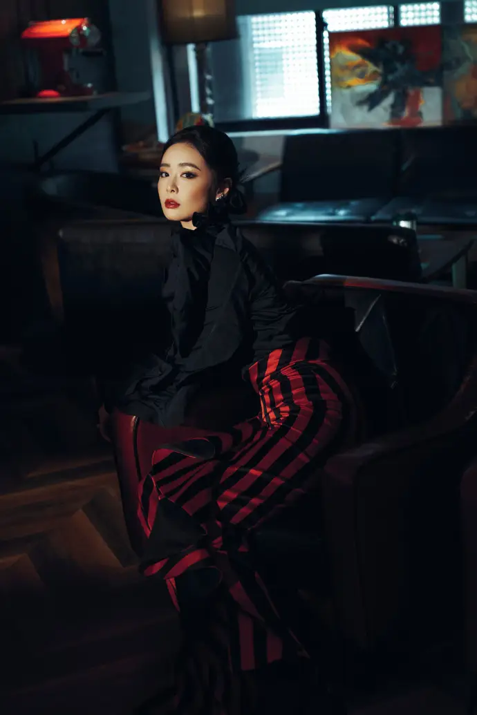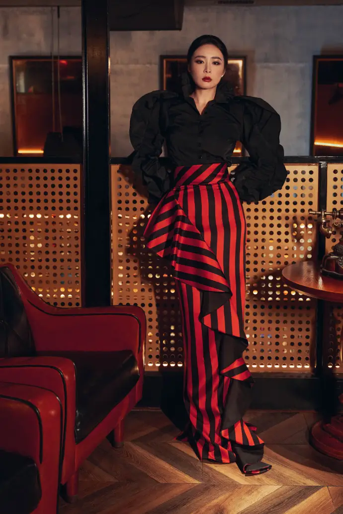 高葉穿著深V黑色亮片禮裙,身材窈窕動人。