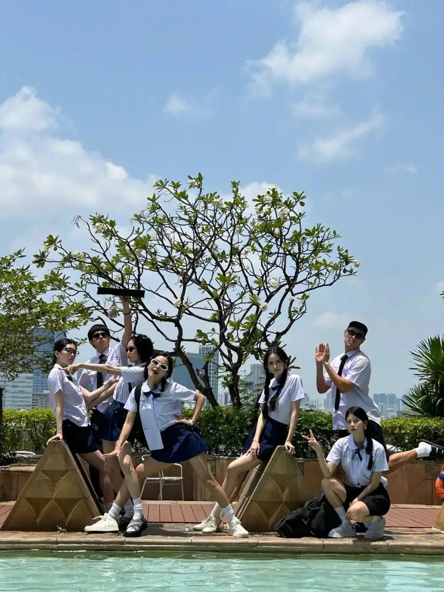 幾人自拍比耶,背影秀出修長(zhǎng)美腿,滿(mǎn)滿(mǎn)的學(xué)生氣息。