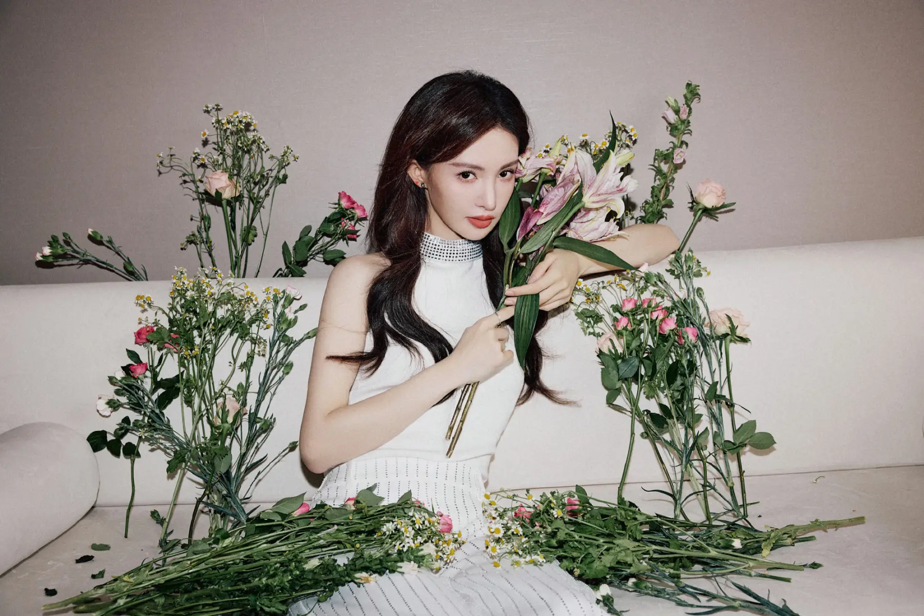 金晨純白造型簡(jiǎn)約大氣 手捧鮮花清香溢出屏幕