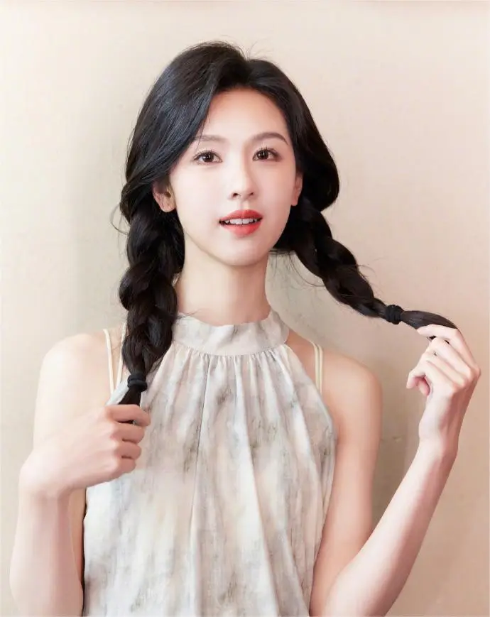 陳都靈雙手扯開(kāi)麻花辮,閉眼甜笑,好靈動(dòng)的少女感!
