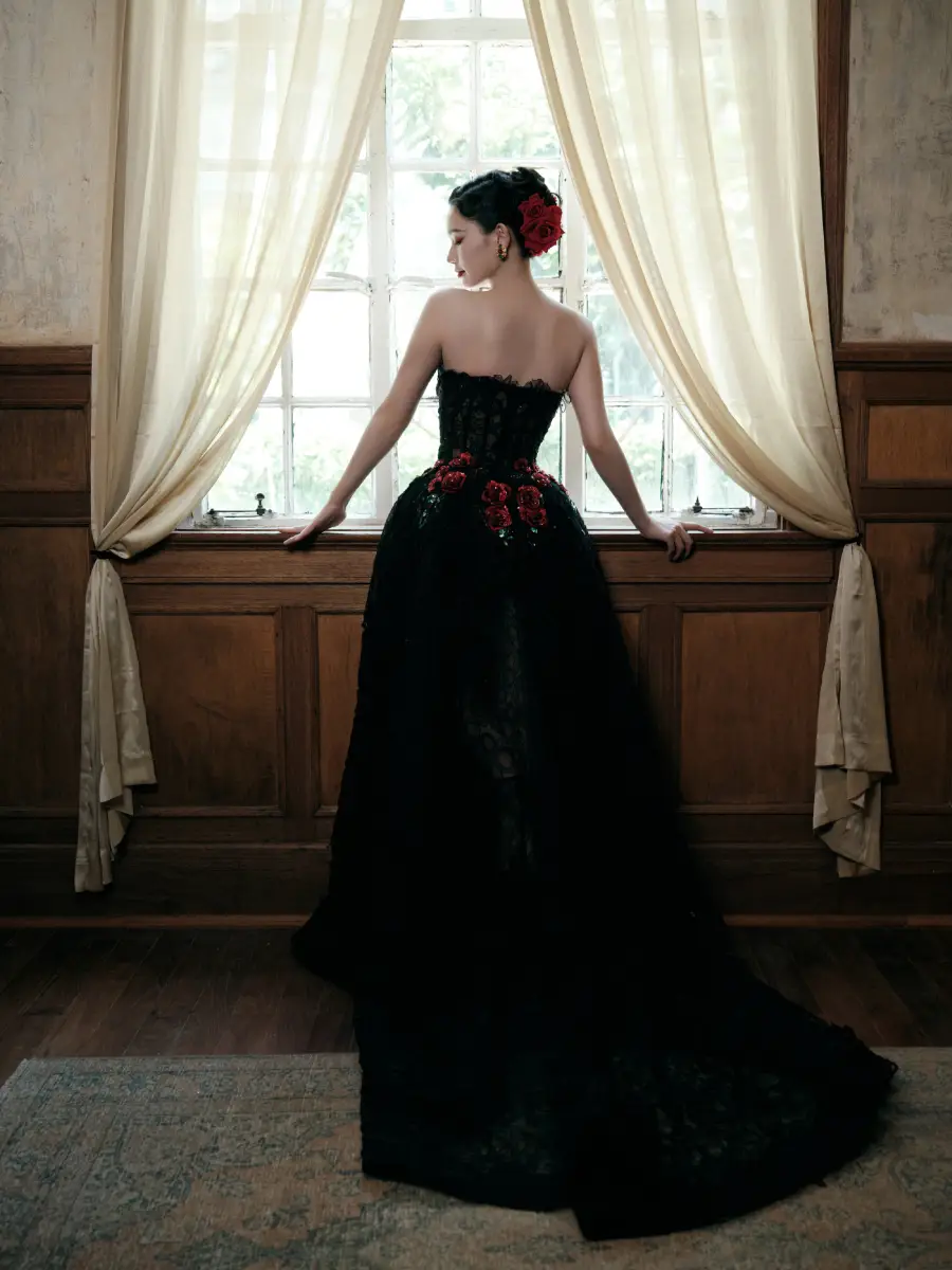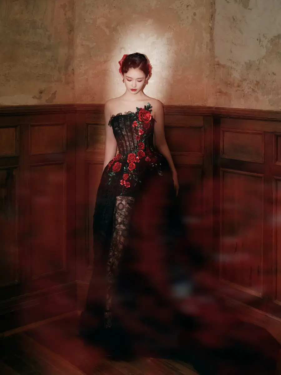 10日,林允參加芭莎盛典的造型寫真曝光,她身穿黑紗玫瑰裙嫵媚迷人,一雙白嫩美腿在裙擺中若隱若現(xiàn),魅力十足!