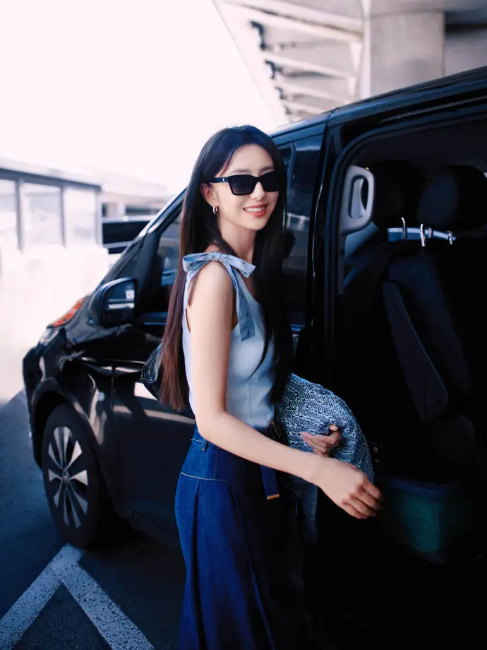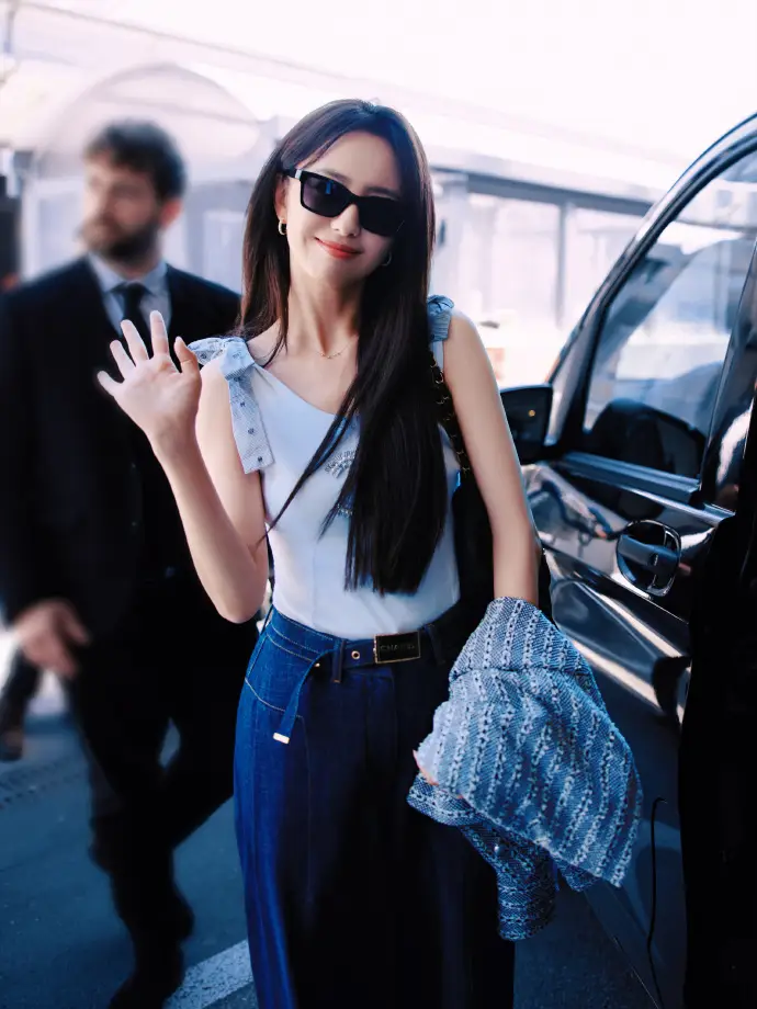 佟麗婭抵達(dá)戛納尼斯機(jī)場 穿藍(lán)色吊帶松弛感十足