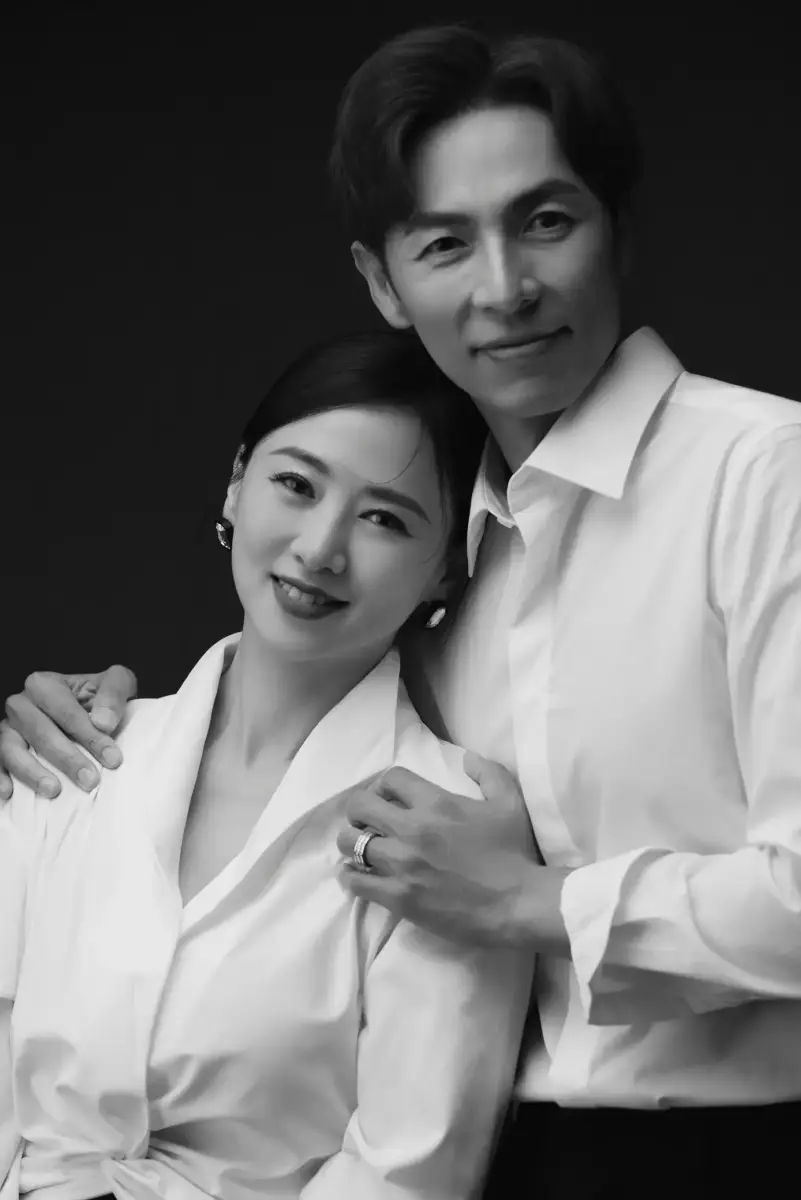 翁虹與老公都穿著白色襯衣搭配黑色長褲,仿佛是職場精英夫妻。