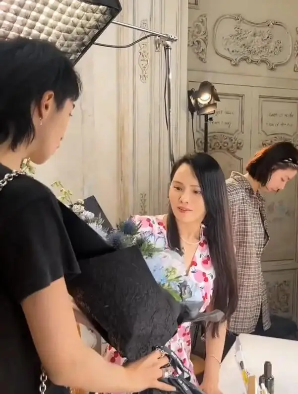 伊能靜看到兒子手捧鮮花來(lái)探班十分開(kāi)心激動(dòng)。