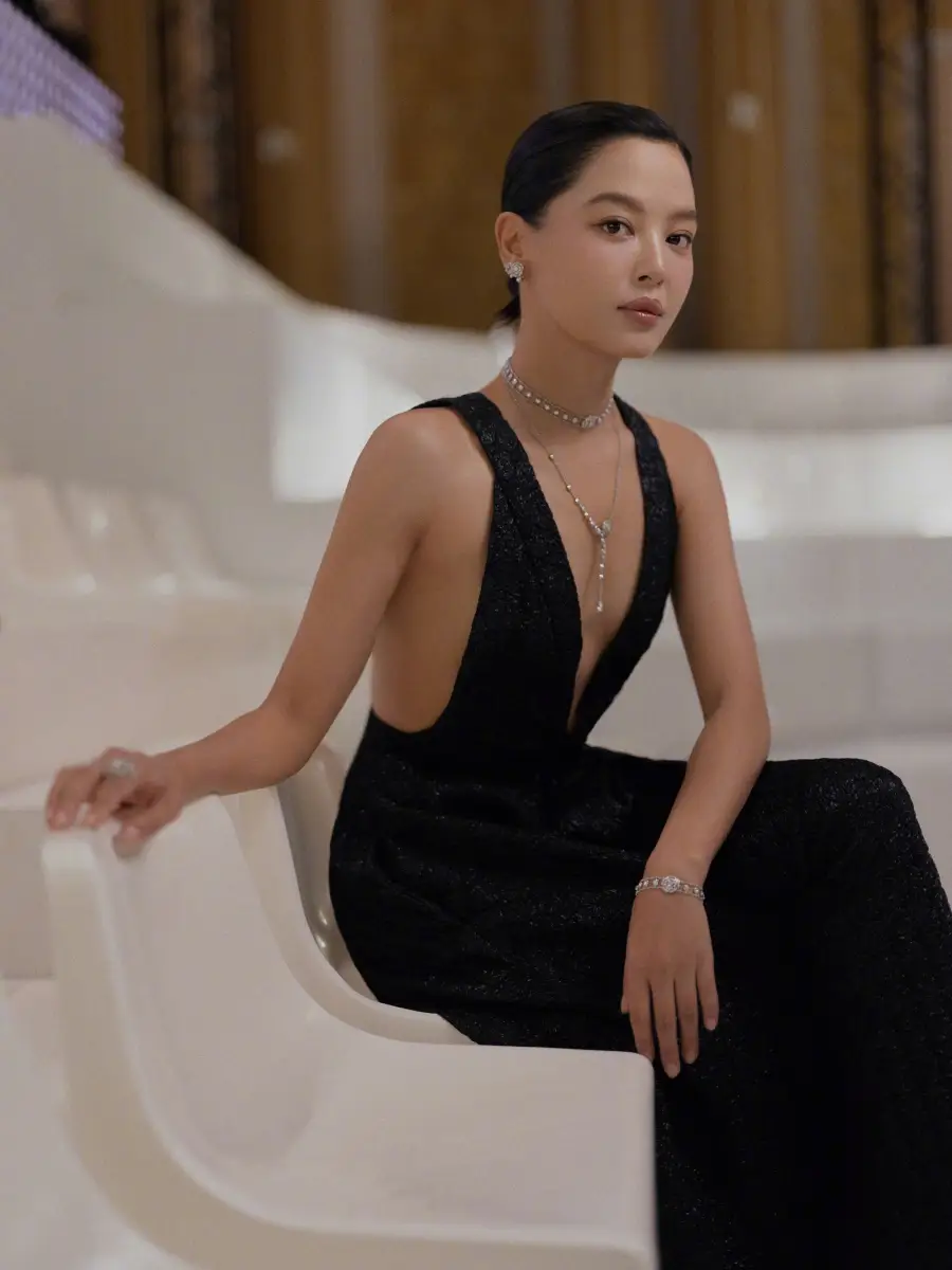 辛芷蕾穿深V禮服性感成熟 化身暗夜玫瑰韻味十足
