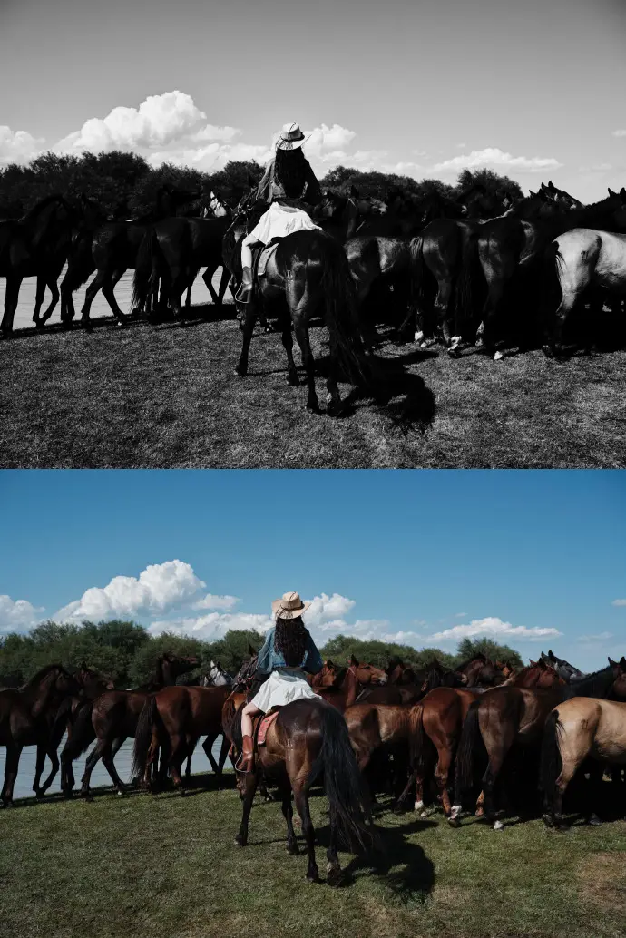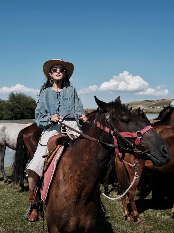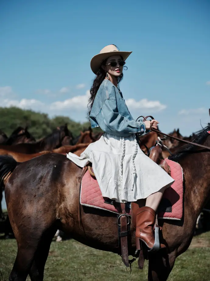 佟麗婭化身草原公主騎駿馬 頭戴牛仔帽酷颯有型