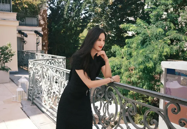 劉詩詩身穿一襲黑裙漫步巴黎街頭,氛圍感十足。